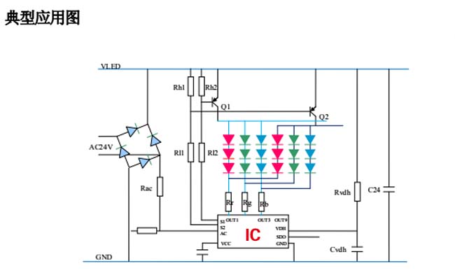 六段內控護欄管通過驅動芯片(IC)控制,其輸入電源在12V到24V之間,可承受30V端口電壓,通過1/2掃描開關端口構成18個通道顯示模式。工作時可以實現(xiàn)整體同步控制。