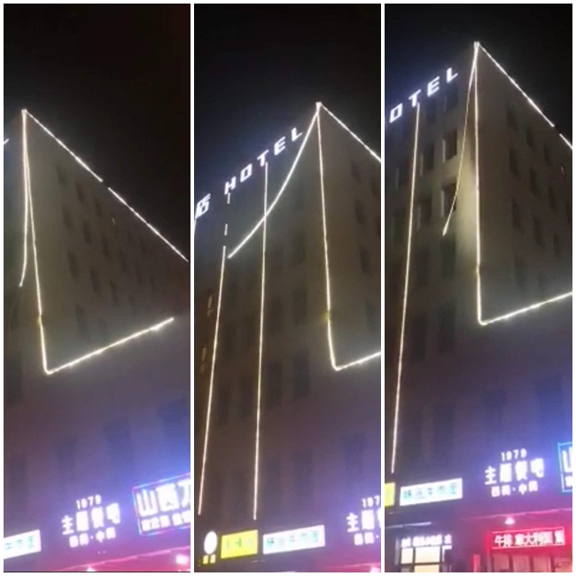 上圖中的LED燈帶在風(fēng)中搖擺,要是高壓的話,后果不堪設(shè)想。
