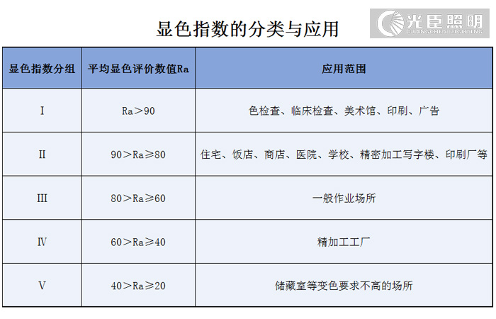 以下是關于顯色指數(shù)的分類與應用: