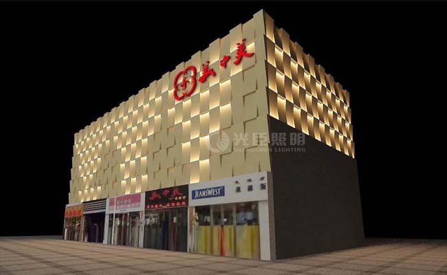 白經理商場具體的情況及亮化要求敘述了一遍,在交談中我們也很快的了解客戶的需求。由于客戶已有具體的亮化方案,而且對該方案比較滿意,光臣照明業(yè)務經理直接根據建筑外墻的特性,給客戶選擇了合適的LED洗墻燈進行安裝。