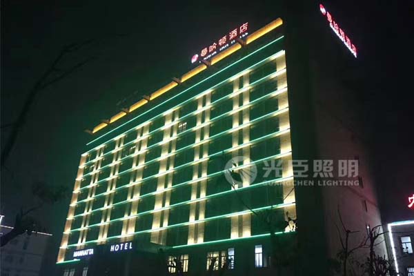 MANHATTAN酒店管理集團(tuán)旗下的曼哈頓酒店是四星級(jí)標(biāo)準(zhǔn)的商務(wù)酒店,上海王小姐憑借她們公司實(shí)力及酒店亮化經(jīng)驗(yàn),在多個(gè)招投標(biāo)項(xiàng)目中使用光臣照明的燈具贏得了好幾個(gè)四星級(jí)連鎖酒店的亮化施工權(quán),本次曼哈頓酒店亮化選用了光臣照明新推出的兩款LED洗墻燈以及排水結(jié)構(gòu)的LED線條燈作為酒店亮化的主要燈具。