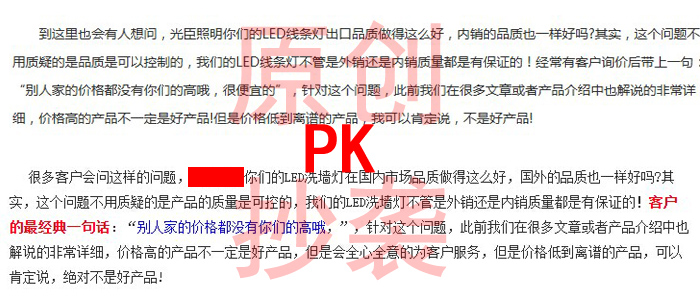 對于這種模仿到“骨架子”里的精神,一直努力給客戶朋友們編寫很多關(guān)于光臣動態(tài)和洗墻燈產(chǎn)品咨詢的黃小編想對共同努力的朋友們說:“要來拿個簽名不?”,玩笑而已,我不是作家,不是明星,算是一個美女,光臣照明你們值得一來,好吧!我玩笑開完了,對于這種抄襲行為,黃小編以前也說過,模仿再像都不是統(tǒng)一老壇酸菜面,不~廣告看多了,應該是:模仿到骨架子里也做不到光臣照明的精髓!