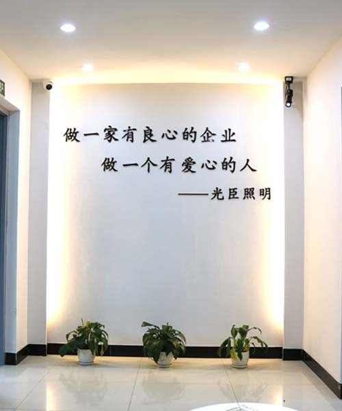 當(dāng)您還沒有走進光臣大門時,電梯門一開,映入眼簾的是墻上白底黑字清清楚楚的兩句話:“做一家有良心的企業(yè)、做一個有愛心的人”,不管是每天上班的員工還是來訪的朋友都對這句話特別有印象(PS:老板也許是個心機BOY,讓員工每天都能帶正能量上班兒)好事!